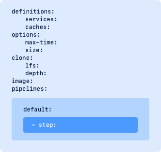 더보기image: node:10.15.0 pipelines: default: - step: name: Build and test script: - npm install - npm test tags: # add the 'tags' section release-*: # specify the tag - step: # define the build pipeline for the tag name: Build and release script: - npm install - npm test - npm run release pull-requests: '**': #this runs as default for any branch not elsewhere defined - step: script: - ... feature/*: #any branch with a feature prefix - step: script: - ... bookmarks: # add the 'bookmarks' section release-*: # specify the bookmark - step: # define the build pipeline for the bookmark name: Build and release script: - npm install - npm test - npm run release custom: # Pipelines that are triggered manually sonar: # The name that is displayed in the list in the Bitbucket Cloud GUI - step: script: - echo "Manual triggers for Sonar are awesome!" deployment-to-prod: # Another display name - step: script: - echo "Manual triggers for deployments are awesome!" branches: staging: - step: name: Clone script: - echo "Clone all the things!"